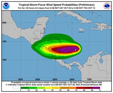 Las autoridades de los países centroamericanos han comenzado a movilizarse ante la inminente llegada de la tormenta tropical Julia , que podría convertirse en huracán antes de tocar tierra. Algunas zonas han iniciado ya las evacuaciones.