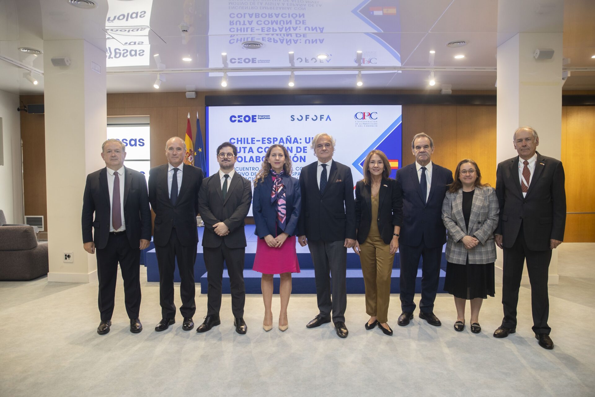 La delegación empresarial chilena estuvo encabezada por las principales organizaciones empresariales del país y sus presidentas, Susana Jiménez (Confederación de la Producción y del Comercio-CPC) y Rosario Navarro (Sociedad de Fomento Fabril-Sofofa).