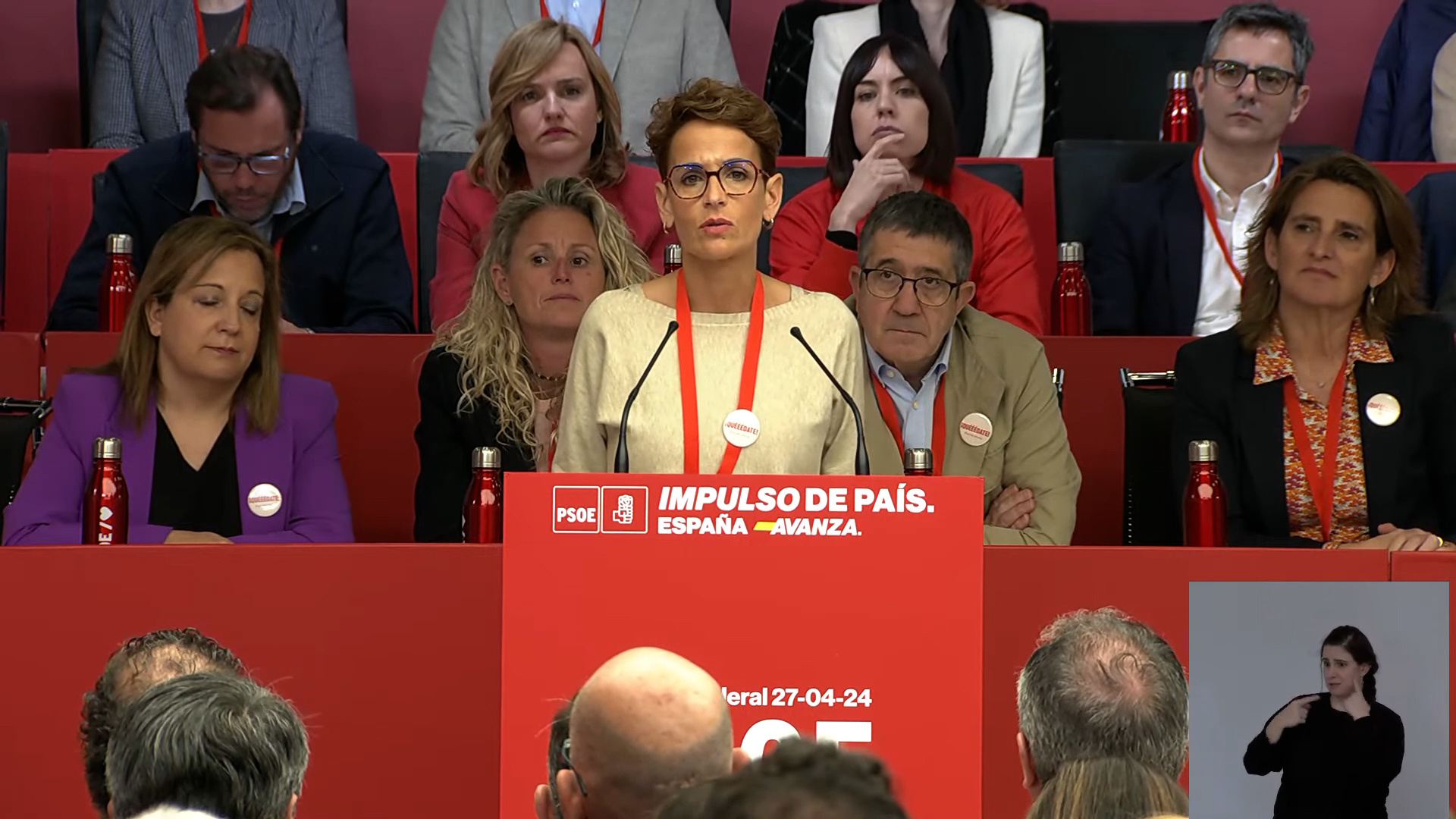 María Chivite se ha mostrado «orgullosa y emocionada de ser socialista» por tener un «secretario general y presidente humano, que siente, que vela por su familia y que entiende que su cargo merece la pena si es para servir a su país y no para perder todos sus esfuerzos desmintiendo bulos».