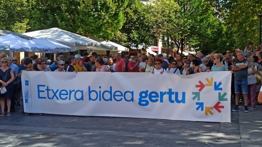 La marcha ha partido a las 12.30 horas del Boulevard donostiarra, para finalizar en el puerto, con el lema Etxean bidea gertu ( El camino a casa cerca , en euskara), en una pancarta.