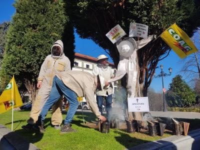 El sindicato agrario COAG se ha movilizado este viernes en Oviedo para denunciar la «crítica» situación en la que se encuentra el sector apícola y han reclamado ayudas directas así como un etiquetado claro que no confunda al consumidor final y la bonificación del carburante, ya que el apícola es el único sector agrario que se quedó fuera del mismo.