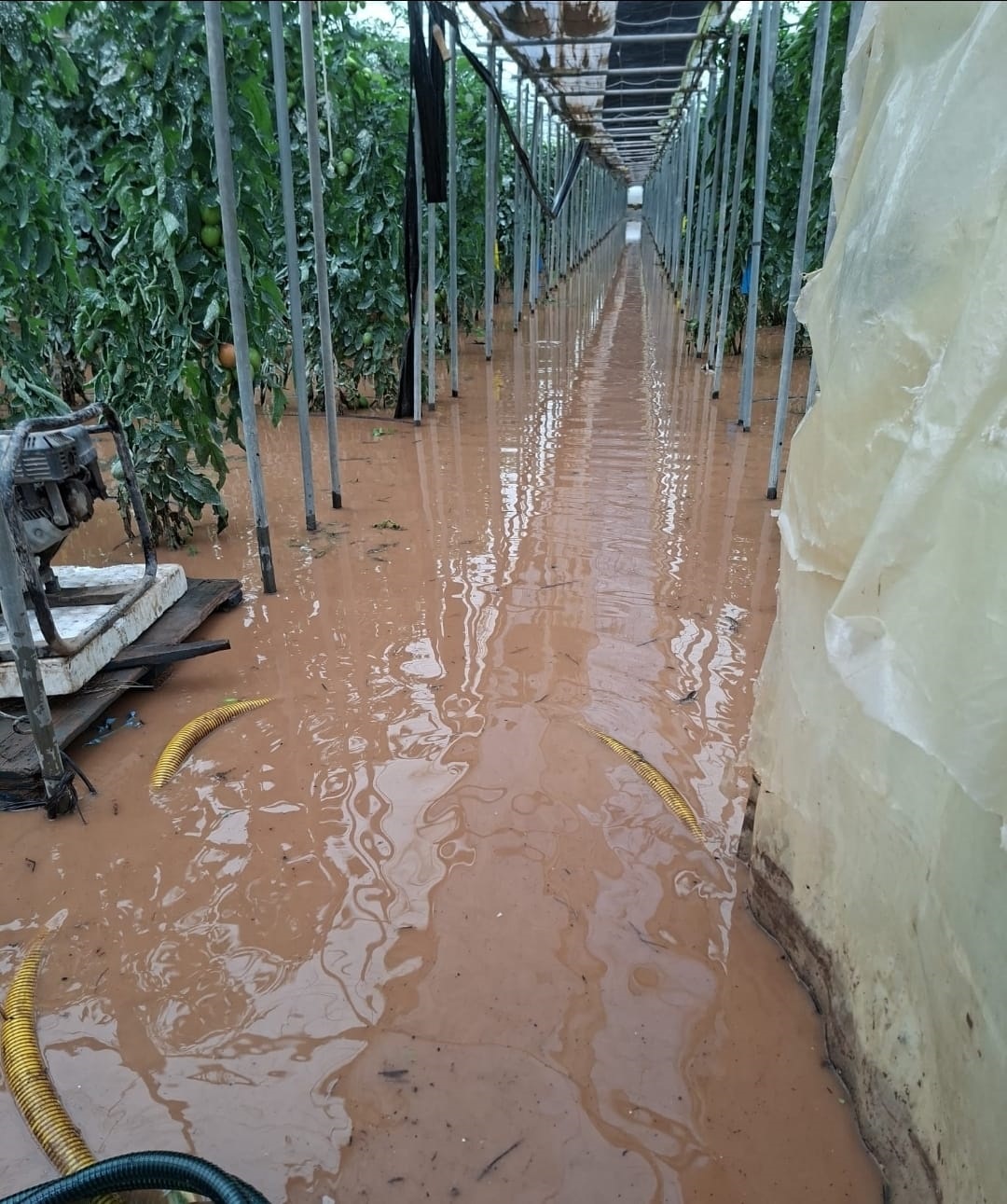 «El suelo, incapaz de absorber más agua, está provocando derrumbes y el anegamiento de explotaciones donde el agua fluye sin control por el interior de las estructuras», según ha descrito el secretario provincial de COAG Granada, Miguel Monferrer.