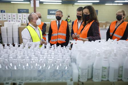 La consejera de Presidencia, Eugenia Carballedo, ha visitado el centro logístico de Mejorada del Campo donde el Gobierno regional prepara y almacena el material de seguridad que se distribuirá durante la jornada electoral.