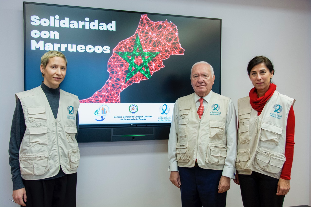 «Las enfermeras españolas, a través de su Organización Colegial, nos queremos volcar con la población marroquí, tras el terremoto de 6,8 que sacudió Marruecos el pasado 8 de septiembre. Con este envío queremos que la población disponga de un lugar para cubrir las necesidades de una población que sigue sufriendo las consecuencias del temblor agravadas por el invierno», apunta Florentino Pérez Raya, presidente del Consejo General de Enfermería.