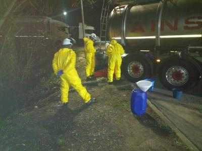 Controlada la fuga de ácido clorhídrico del camión parado en una estación de servicio de Ambrosero