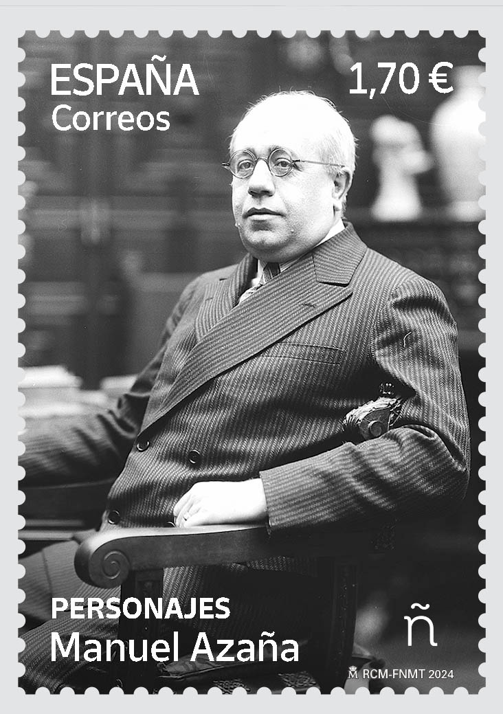 Correos ha emitido un sello dedicado a la figura de Manuel Azaña, presidente del Gobierno entre los años 1931 y 1933 y presidente de la Segunda República Española entre 1936 y 1939, durante la Guerra Civil.