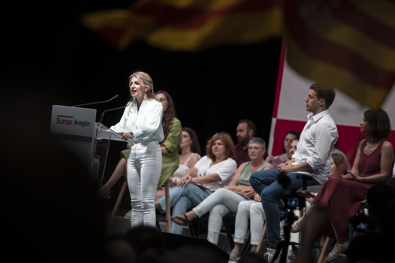 Díaz llega a la capital aragonesa tras una apertura de campaña en Madrid que desde Sumar han planteado como de «alto contenido ideológico», sacando bandera de sus propuestas icónicas y reivindicando ser el motor del Gobierno de coalición progresista, una excepción en el continente que debe protegerse.