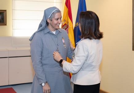 Tras la imposición de la medalla, Robles ha manifestado su agradecimiento a la homenajeada, que al igual que las Fuerzas Armadas, es «un ejemplo de coraje, generosidad y entrega». «Personas como tú y tus hermanas de congregación, tenéis la capacidad de transformar el mundo», ha expresado la ministra.