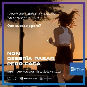 Cuestionado sobre la campaña de la Xunta, en la que se puede leer Se viste con mallas de deporte , Va a correr por la noche , qué sucede ahora , no debería pasar, pero pasa , ha manifestado que no solo lo piensa él «sino mucha gente».