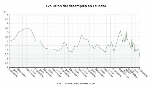 Este gráfico acompaña a la noticia titulada: Ecuador cerró el año 2022 con una tasa de desempleo del 3,2%, casi un punto menos que en 2021