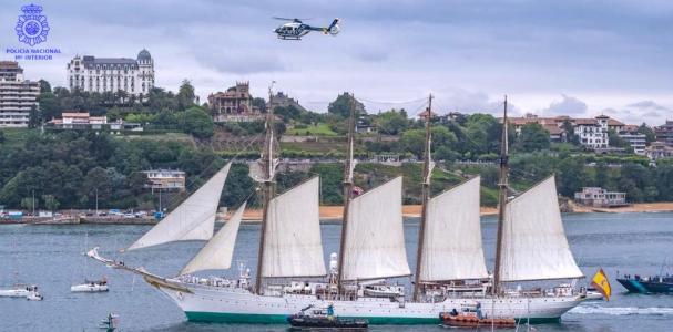 Con motivo de la visita esta semana a Santander del buque-escuela Juan Sebastián de Elcano , la Jefatura Superior de Policía ha establecido varios dispositivos de Seguridad y Protección Aérea desde su llegada, el pasado día 20, hasta su partida.