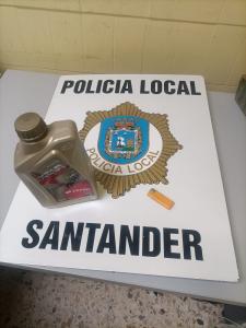 Los agentes localizaron a la altura de la calle Castilla a un hombre que coincidía con la descripción de la testigo, y al identificarle, comprobaron que entre sus pertenencias llevaba una navaja, un bote de un litro de aceite de motor y un mechero.