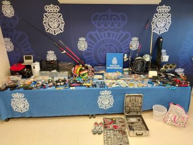 En los registros de su domicilio, trastero y vehículo se encontró una gran cantidad de los efectos robados, en su mayoría herramientas y artículos relacionados con la pesca.