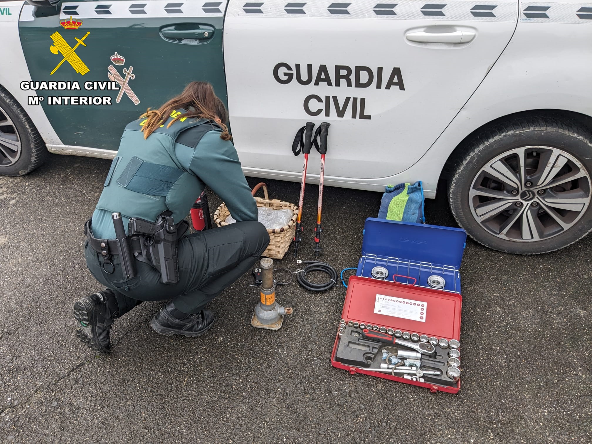 Fueron trasladados junto a su vehículo, en el que se encontró, oculto en el maletero, todo el material robado del todoterreno.