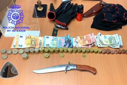 También comprobaron que las características del conductor coincidían con las del presunto autor del atraco plenamente, por lo que procedieron a su detención, incautando, además de las prendas usadas en el robo, una bolsa con billetes y monedas (415,22 euros) y una navaja.