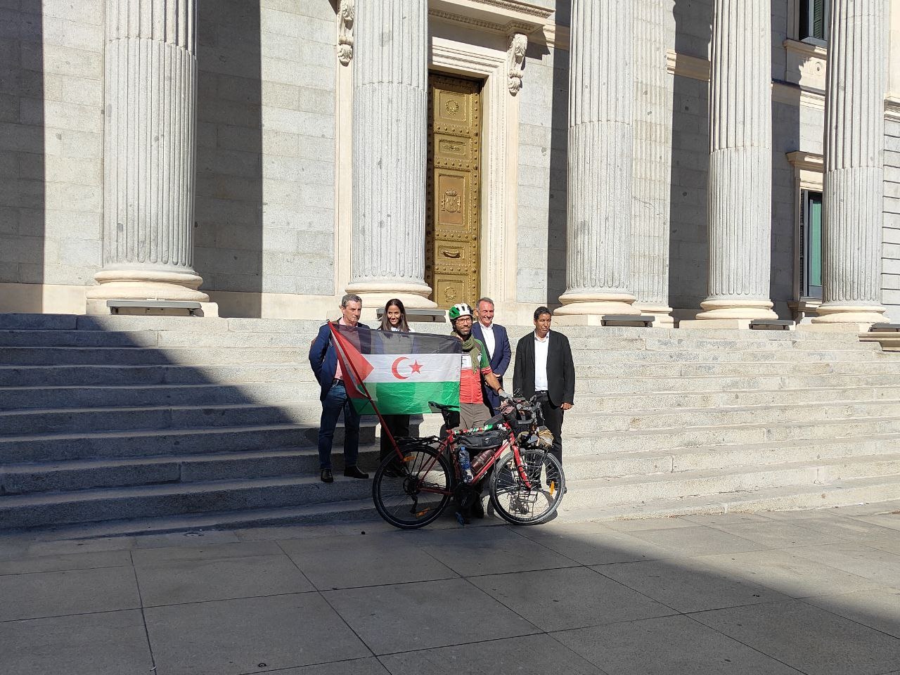 Los diputados de Sumar Tesh Shidi y Enrique Santiago han recibido este lunes en el Congreso al activista sueco Benjamin Ladraa tras recorrer 25 países en bicicleta para concienciar del sufrimiento de pueblo saharaui y reclamar a Marruecos su descolonización.