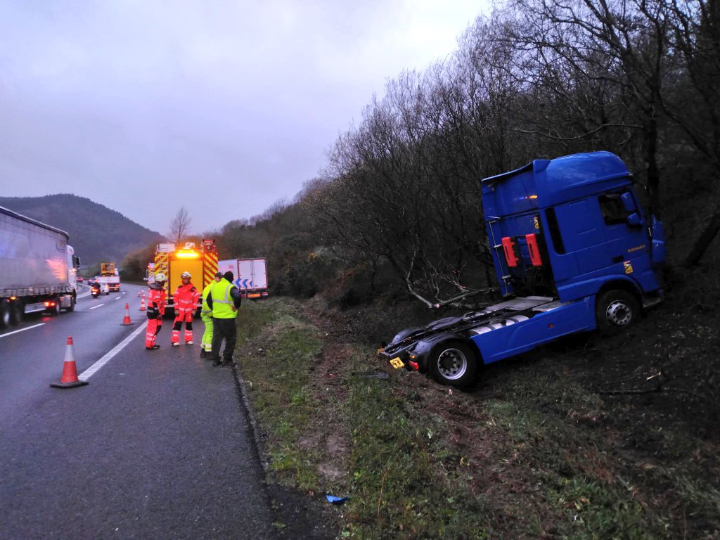 Dos heridos leves en la colisión de dos camiones y un turismo en la A-8