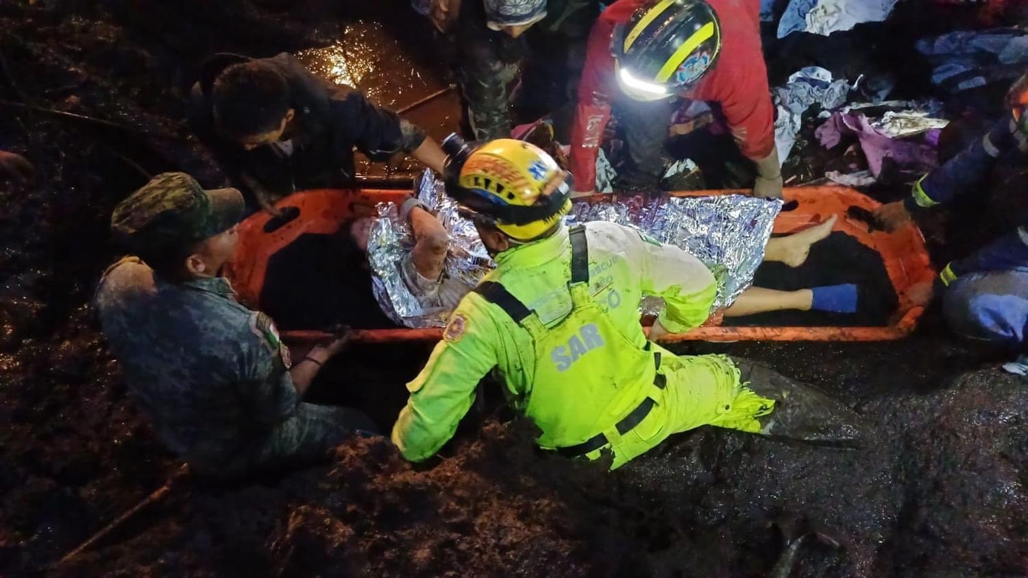 La lluvia dificulta las labores de rescate, pero los rescatistas han logrado localizar a ocho personas con vida en total, dos de ellas menores de edad.