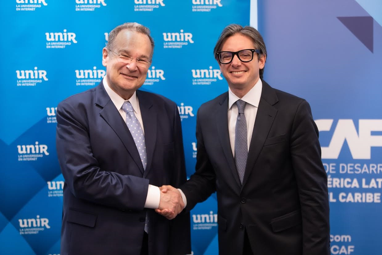 La Universidad Internacional de La Rioja (UNIR) y CAF -banco de desarrollo de América Latina y el Caribe- han firmado un programa de 30 becas en el marco de un acuerdo de cooperación que permitirá cursar en línea másteres de alta calidad a funcionarios públicos, líderes sociales, miembros del sector privado y ciudadanía en general, que hayan cursado y aprobado algún programa formativo del organismo financiero.
