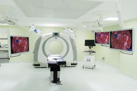 Este quirófano, el primero de estas características de la sanidad privada, posee un TAC intraoperatorio móvil de gran versatilidad y un sistema de monitorización intraoperatoria capaz de obtener información on line cada 5 segundos sobre cómo tolera el paciente las maniobras quirúrgicas y dispone de neuronavegadores, que aumentan la precisión del cirujano al facilitar el seguimiento del avance de la operación.