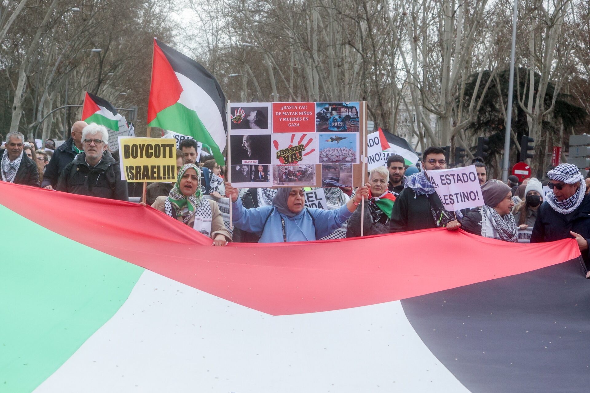 Asimismo, solicitan una inmediata ruptura de relaciones diplomáticas, militares, comerciales, tecnológicas, económicas, deportivas y culturales con el Estado de Israel. Y, en concreto, abogan por la expulsión de las selecciones de Israel de toda competición deportiva o artística internacional en la que participe España y, en caso de que no ocurra, que sea España la que se retire de las mismas.