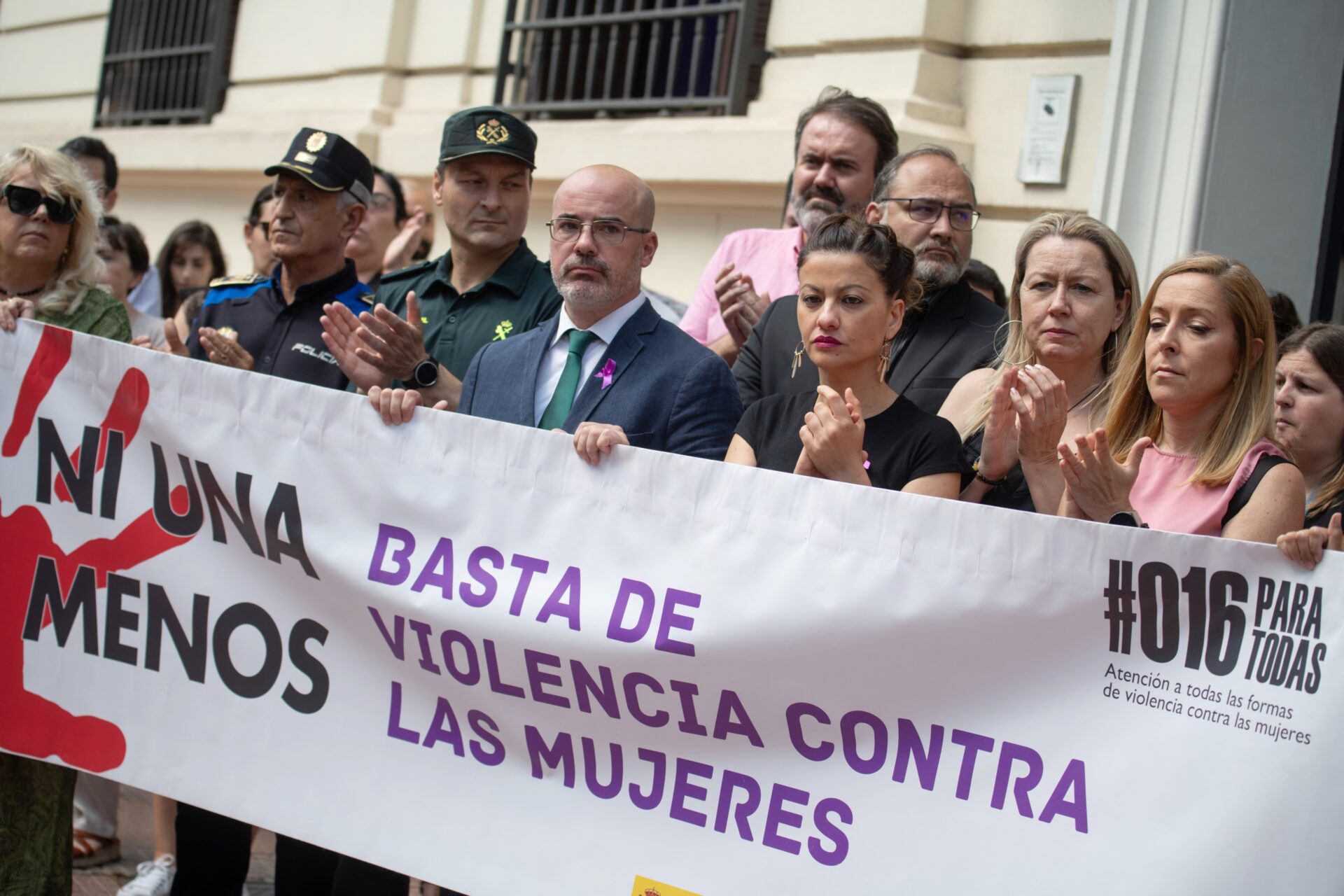 Empleados de la Delegación del Gobierno, incluido Martín, así como la ministra de Juventud e Infancia, Sira Rego, junto a representantes de las fuerzas de seguridad, han guardado un minuto de silencio frente a la institución por el asesinato en Getafe, donde además se ha leído un manifiesto.