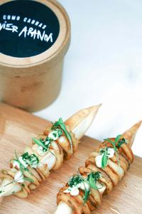 La oferta gastronómica de Aranda en su delivery es una recopilación de algunos de los platos más emblemáticos tanto de su antiguo gastrobar La Cabra como de Gaytán , entre los que figura el taco de pato Pekín, la minihamburguesa de steak tartar, el croissant de cocochas o el bocadillo de calamares a la inversa.