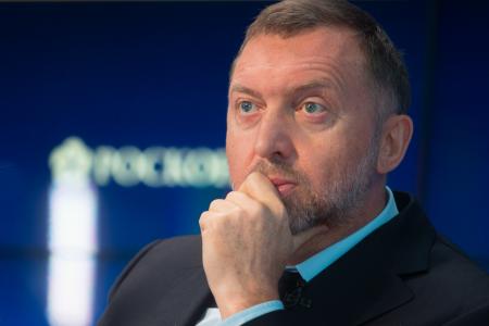 Deripaska fue sancionado por Estados Unidos en 2018 en respuesta a la injerencia rusa en las elecciones de 2016. El Departamento del Tesoro anunció las medidas y lo acusó de blanquear capitales, además de poner en peligro la vida de empresarios «rivales» y grabar ilegalmente conversaciones con un alto cargo del Gobierno.