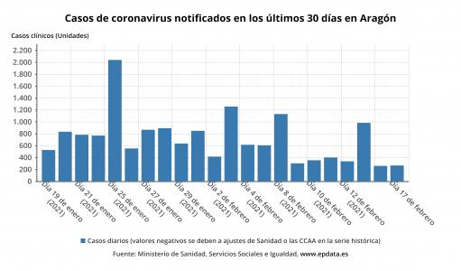 El Gobierno de Aragón ha confirmado 253 casos de la COVID-19, correspondientes a los resultados de 3.148 pruebas diagnósticas, conocidos este miércoles, 17 de febrero, que han arrojado un porcentaje de positividad del 8,04 por ciento.