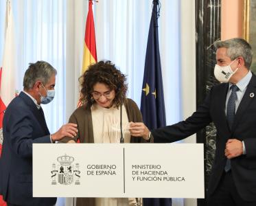 La Ministra de Hacienda y Función Pública, María Jesús Montero, y el presidente de Cantabria, Miguel Ángel Revilla, se han reunido este jueves en la sede del Ministerio para firmar dos acuerdos con el objetivo de mejorar la financiación del Hospital Universitario Marqués de Valcedilla (Santander) y el desarrollo del polígono industrial de La Pasiega, una partida presupuestaria de 22 millones de euros.