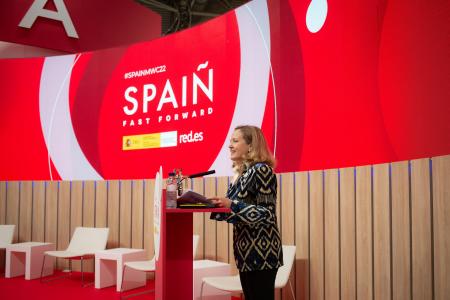 Calviño ha asistido a la jornada de inaugural del Mobile World Congress, que, por primera vez en 17 años, ha reconocido con un premio la política de digitalización del Gobierno español.
