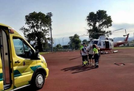 El helicóptero le ha transportado hasta el complejo deportivo municipal Javier Cortezón de Laredo, y desde allí una ambulancia del 061 le ha llevado al hospital, situado a escasos metros.