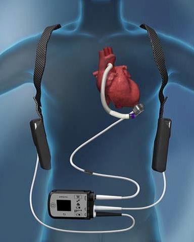 El corazón mecánico está a su vez conectado mediante un cable que sale por el abdomen hasta un pequeño ordenador que cada paciente debe llevar consigo siempre y que funciona con baterías recargables. Este aparato es el que hace funcionar la bomba y permite realizar el seguimiento y el control de cada paciente en su domicilio.