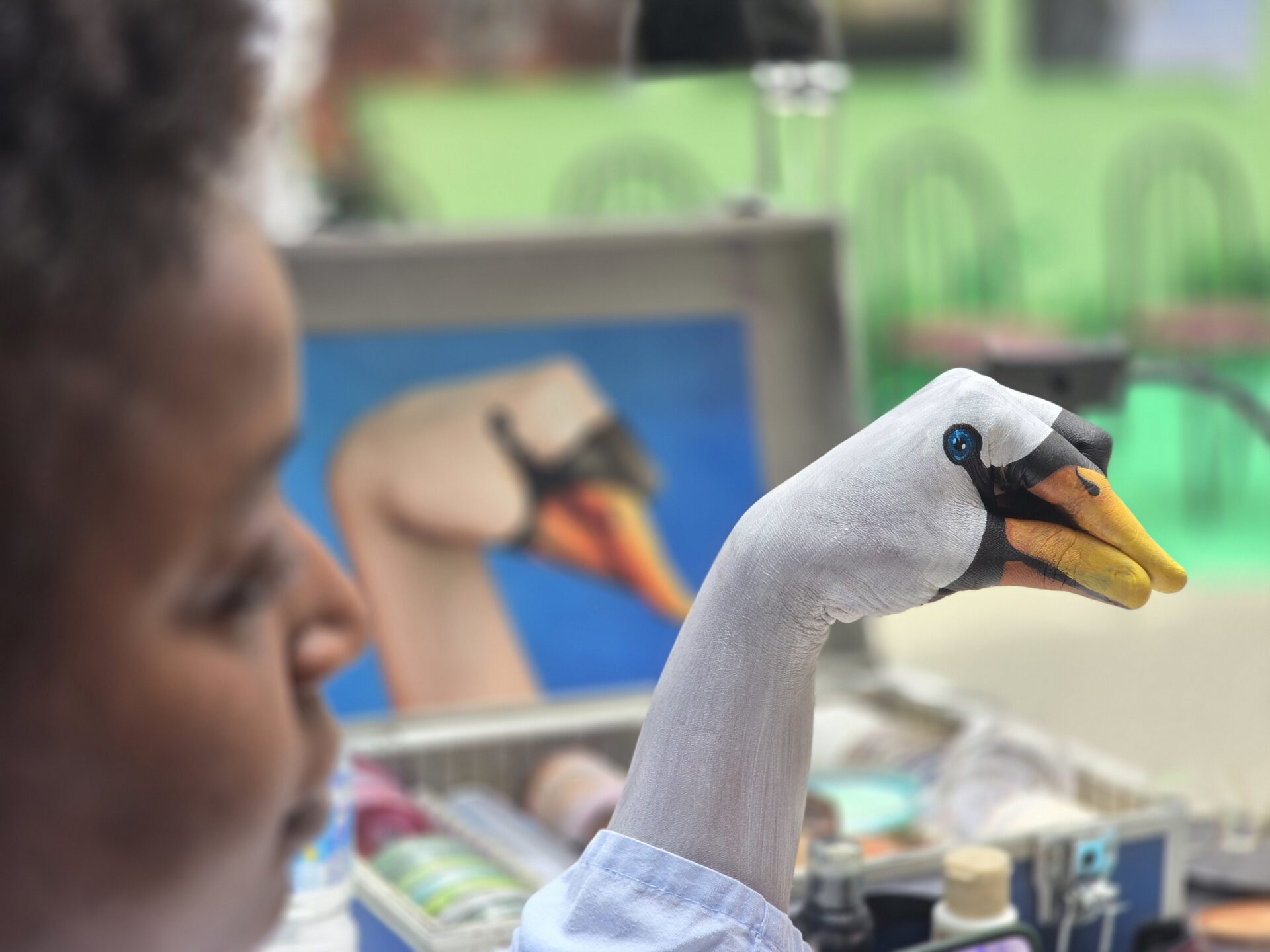 La muestra se compone por más de 20 coloridas imágenes de animales pintados en manos de distintas personas, convertidas por una vez en lienzos que representan retratos de jirafas, pelícanos, elefantes, tortugas e iguanas. Además, la Unidad de Impresión en 3D del Hospital ha reproducido algunas figuras de animales, como un zorro o un águila, que se han incorporado al material expuesto.
