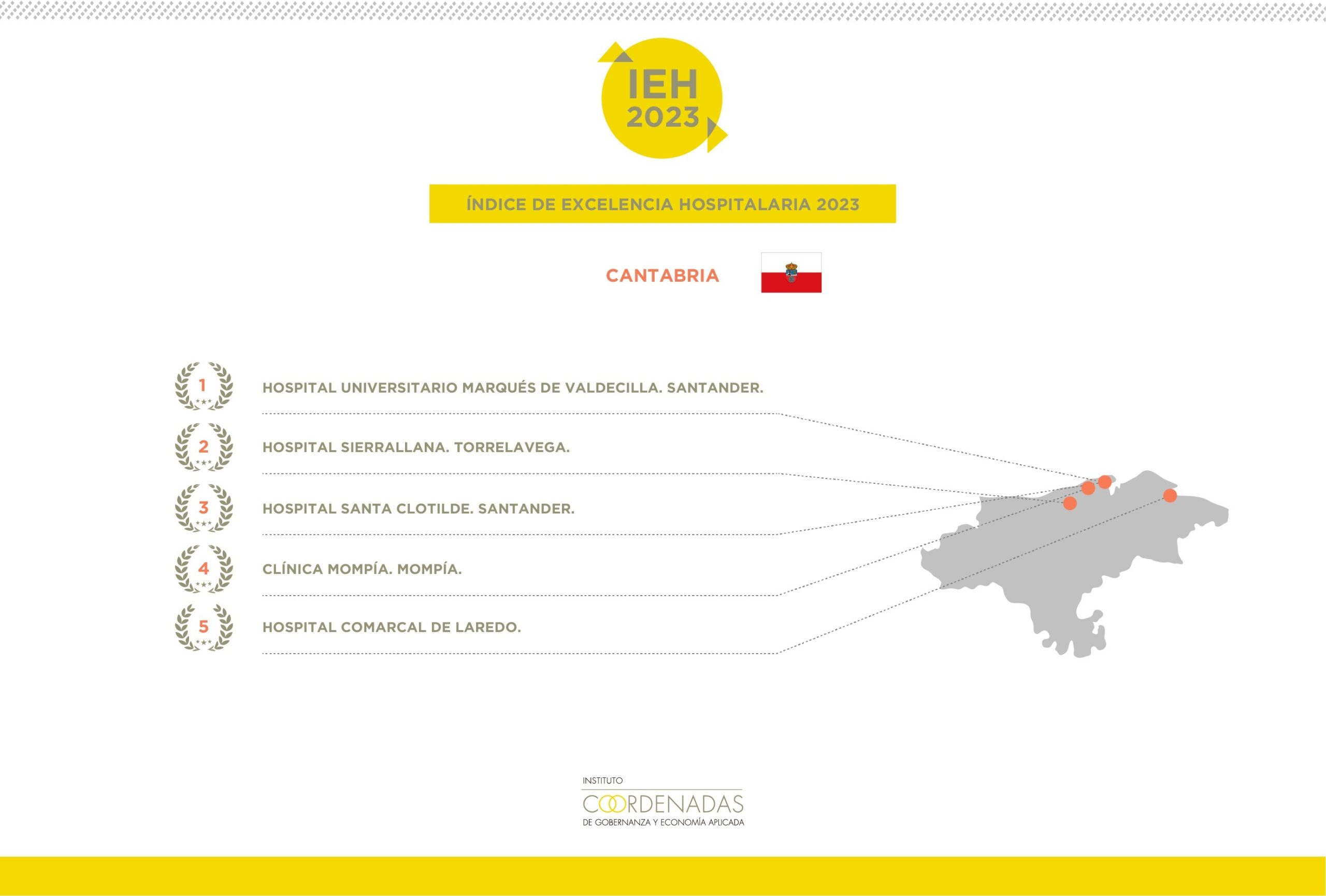 En 2023, el Hospital Valdecilla se consolida en la primera posición del ranking regional cántabro, al situarse a la cabeza del top 5 de los hospitales de la comunidad. El Hospital de Sierrallana en Torrelavega repite, una edición más, como el segundo de la región.