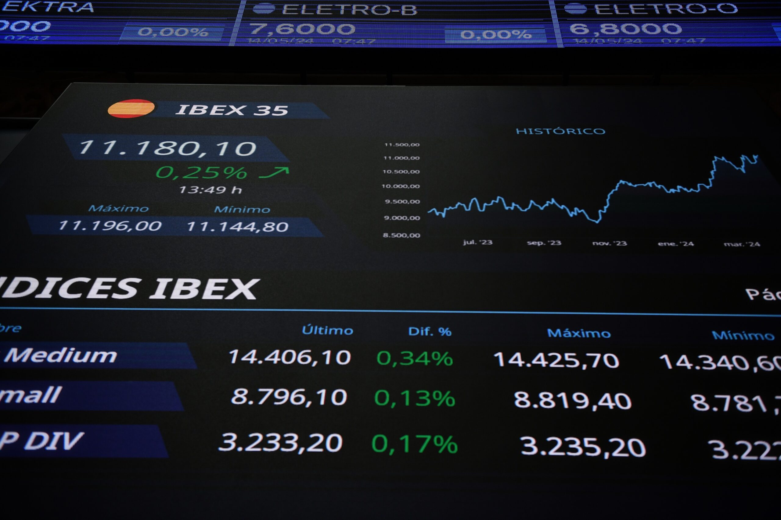 El Ibex 35 cierra la primera sesión de la semana con un avance del 0,10%, hasta los 11.340 puntos