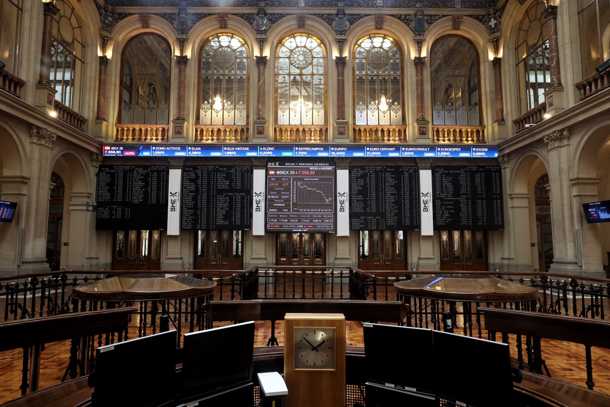 El Ibex 35 ha cerrado septiembre con una caída mensual del 6,3%, lo que le ha llevado a situarse en los 7.366,8 enteros, y acumula pérdidas del 15,4% en comparación con el nivel registrado a finales de 2021.