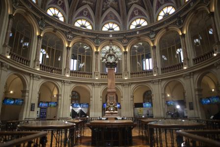 El Ibex 35 cotizaba en los 8.700,9 puntos a las doce del mediodía, con una caída del 0,85% y la mayoría de sus valores en negativo.