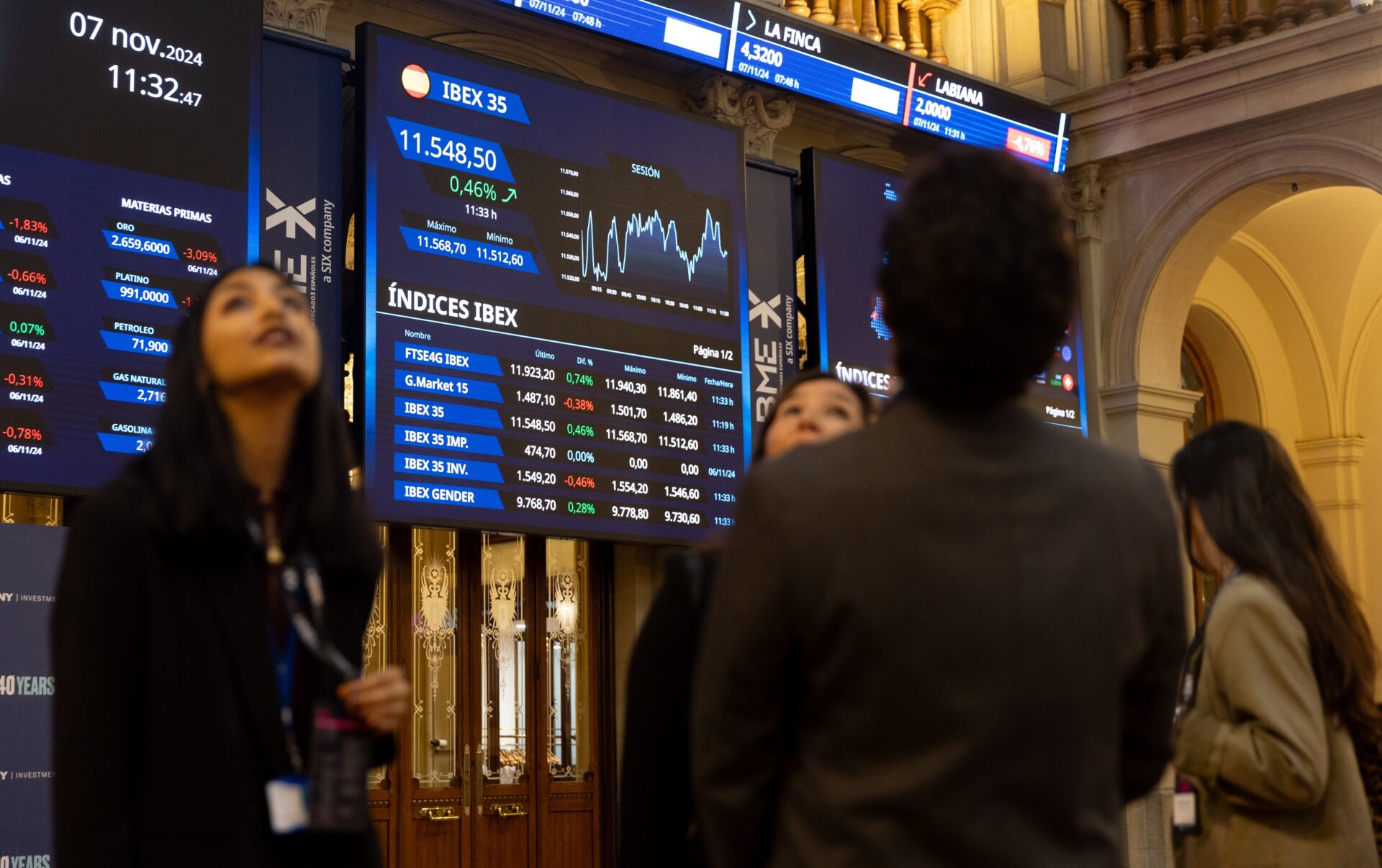 El Ibex 35 se deja un 0,11% en la media sesión, hasta los 11.558 puntos