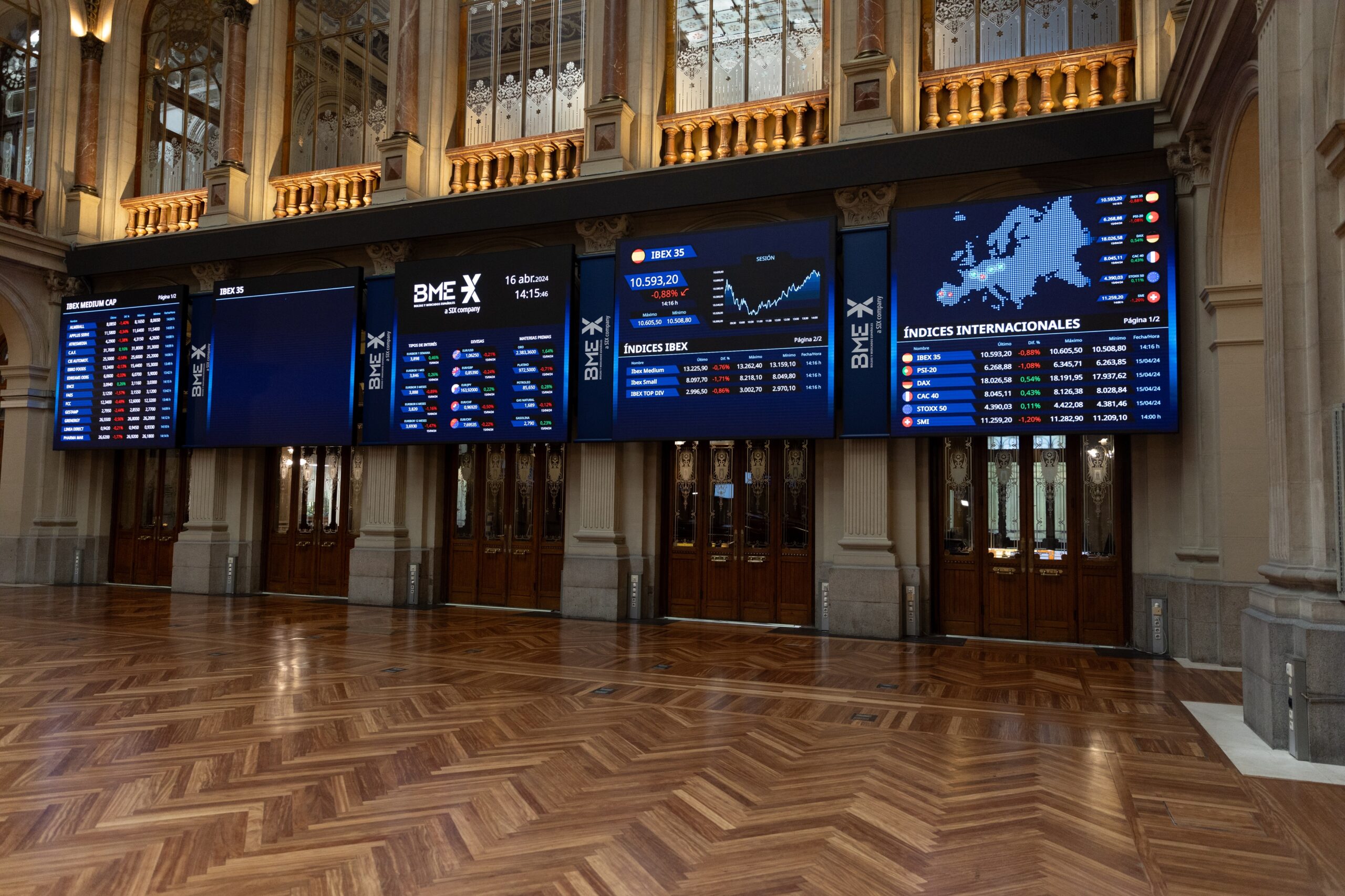 En el lado contrario se ha situado Inditex, que ha caído un 3,24%, afectada por el efecto ex-dividendo. Le seguían Rovi (-2,71%), Banco Santander (-2,06%, también afectado por el efecto ex-dividendo), BBVA (-0,77%), Indra (-0,38%) y Amadeus (-0,30%).