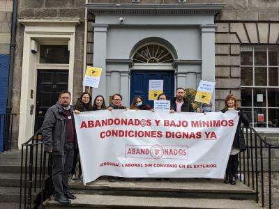 El personal laboral sin convenio que trabaja en las dependencias adscritas al Ministerio de Asuntos Exteriores en Reino Unido, en huelga desde el pasado 14 de marzo, ha llevado su queja sobre su situación hasta el Parlamento Europeo, ante el que ha presentado una petición.