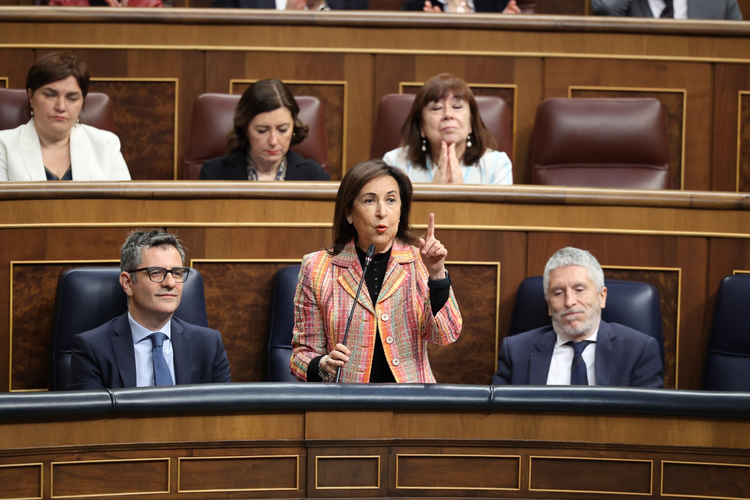 Así, el vicesecretario de Institucional del PP, Esteban González Pons, ha aprovechado su pregunta a Robles, que versaba precisamente sobre el incremento del gasto en Defensa para pedir la dimisión de una de las dos, haciendo hincapié en que se puede estar incumplimiento el deber de secreto de las deliberaciones del Consejo de Ministros.