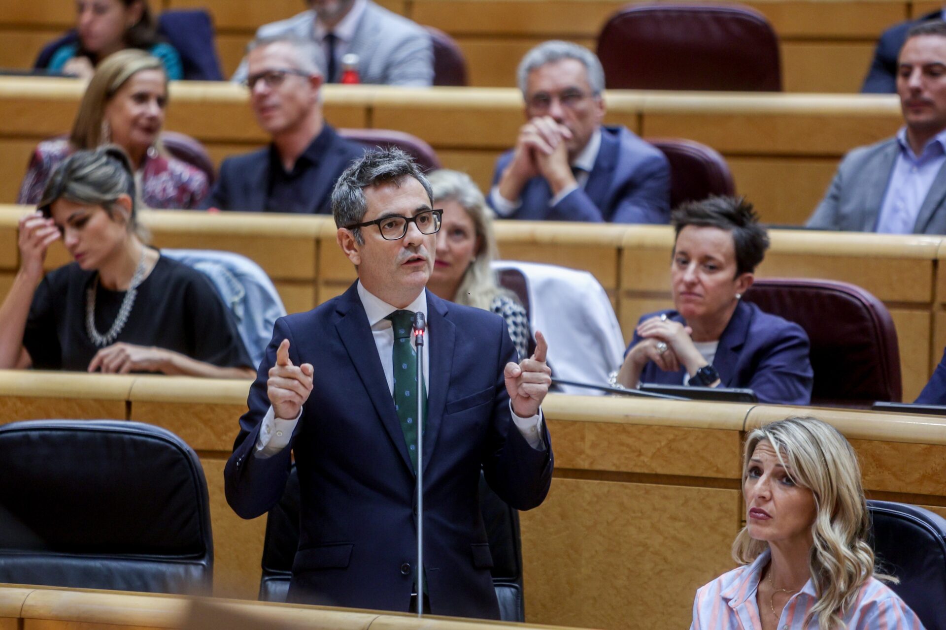 Es la única alusión que ha hecho Bolaños sobre este asunto en la sesión de control al Gobierno en el Senado, después de que la portavoz del PP en la Cámara Alta, Alicia García, le haya acusado de decir que este caso era «una denuncia disparatada».