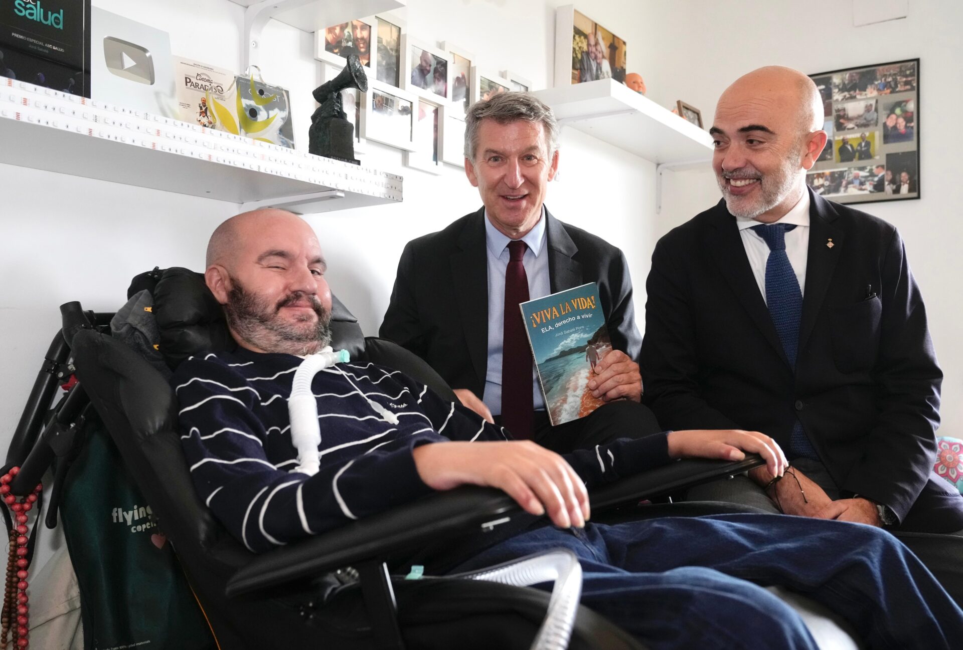 El presidente del Partido Popular, Alberto Núñez Feijóo, ha trasladado este martes a Jordi Sabaté, enfermo de ELA que lleva más de 10 años luchando por mejorar la vida de estos pacientes, el «firme compromiso» del partido con la Ley ELA y los afectados.