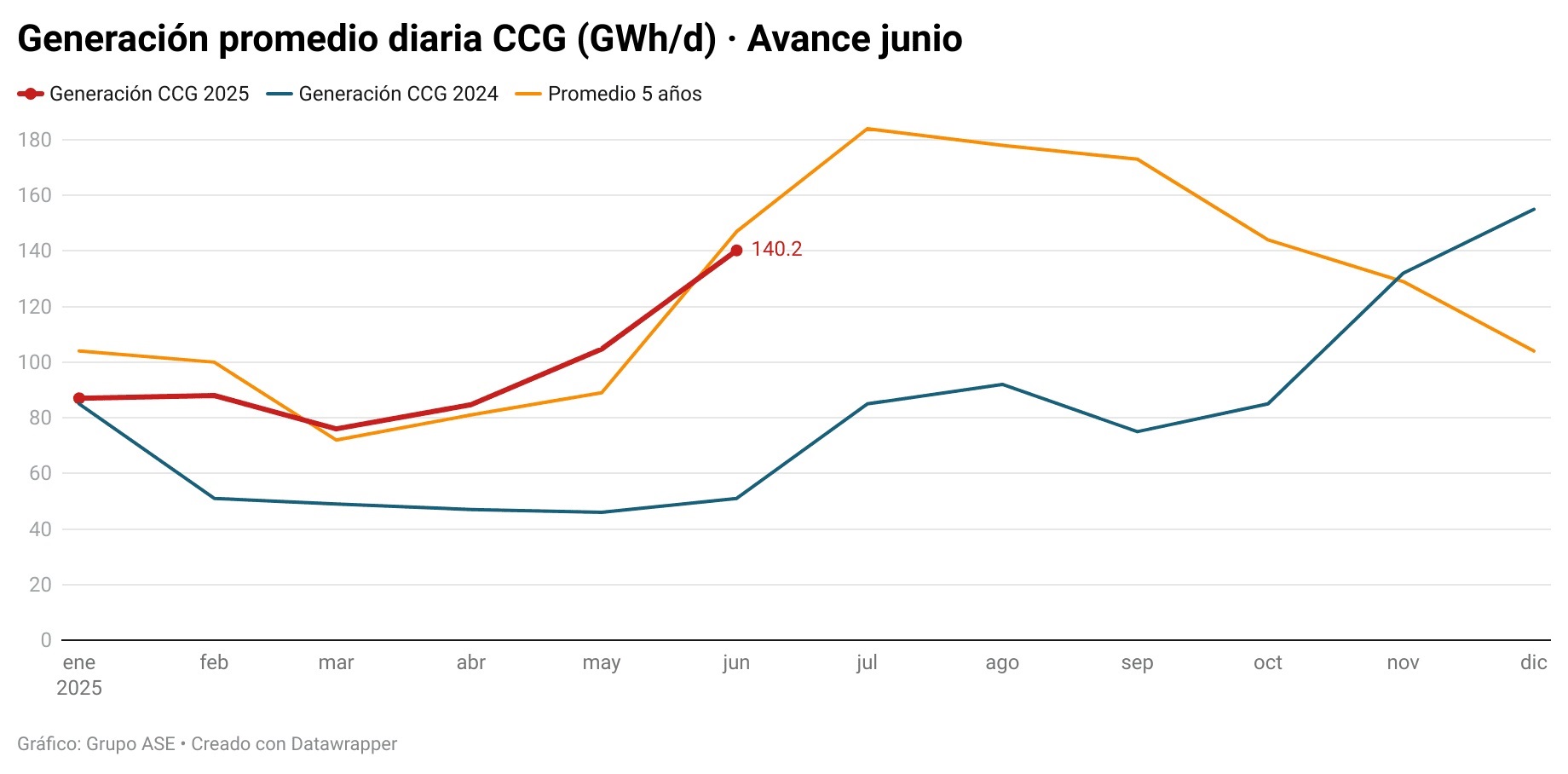 Según informa el Grupo ASE, el repunte de precios en junio obedece al incremento de la generación de los ciclos combinados de gas (CCG) para compensar el fuerte impulso de la demanda y la menor generación hidráulica.