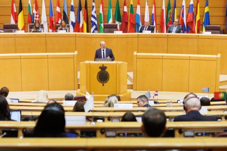 Rollán ha instado a los asistentes a la reunión de presidentes de la COSAC a que exijan que los parlamentos nacionales «no sigan viendo mermado su papel esencial como eje del debate político» y de la «toma de decisiones legislativas».