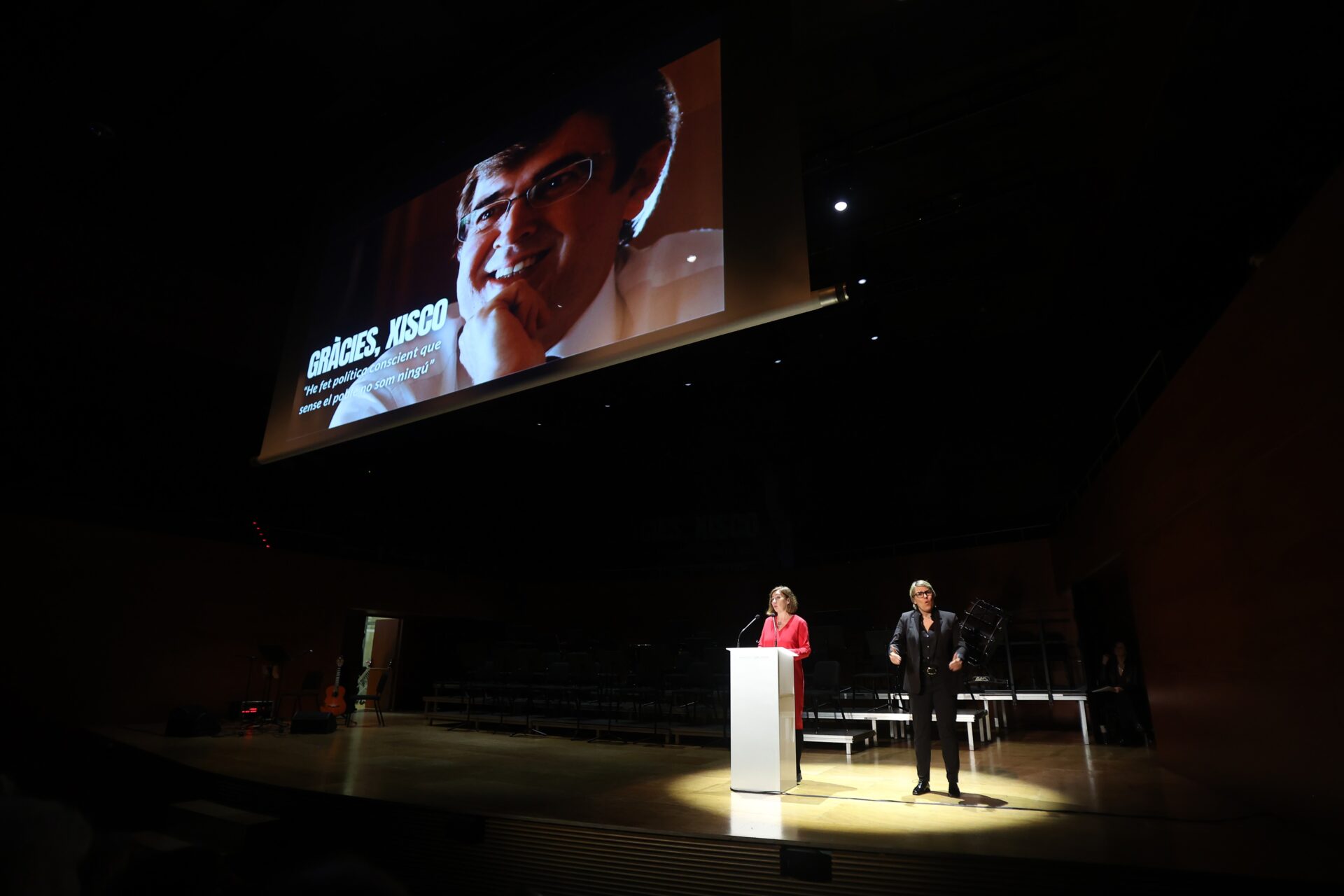 Bajo el título Gràcies, Xisco , multitud de personas han llenado el salón de actos del Conservatorio Superior de Música y Danza de Baleares para participar en un homenaje en el que han intervenido el expresidente del Gobierno José Luis Rodríguez Zapatero y la secretaria general del PSIB y presidenta el Congreso, Francina Armengol, entre otras personas.