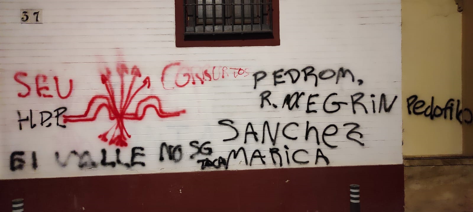 Desde el PSOE andaluz han explicado a los medios de comunicación que la sede regional del partido en Sevilla «ha vuelto a amanecer» este martes, y como ya ocurriera con anterioridad «en poco más de un mes», con «pintadas, amenazas e insultos a los socialistas como consecuencia directa de la radicalización del discurso del odio por parte de la derecha y de la ultraderecha».