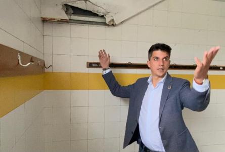 El concejal ha visitado en recinto tras las «numerosas» quejas recibidas, y ha comprobado «el deterioro del césped artificial, lleno de parches, destrozado y desgastado; los vestuarios con humedades, la suciedad y el descuido de las gradas y de toda la instalación en general».