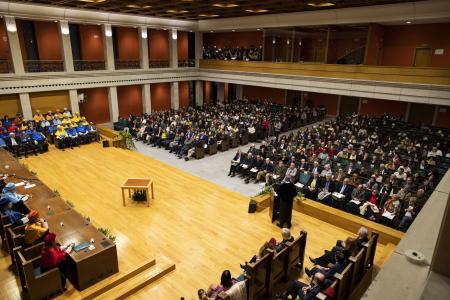El rector ha reflexionado sobre las líneas de trabajo de la Universidad durante el acto celebrado este viernes por la festividad de su patrón, Santo Tomás de Aquino, en el que ha hecho referencia también a retos como fomentar «de forma radical» la transversalidad en los planes de estudio, «porque solo así podremos garantizar que el estudiantado egresado consiga un empleo digno», o a apostar por la formación permanente a lo largo de la vida.